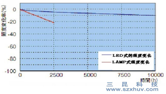 ■減少耗材成本,LED的使用時間一般可以達到25000-30000小時,而傳統LAMP方式照射機約2000小時左右就需要更換燈管,LED-UV采用電纜輸出,無光纖導光,LED可以為您減少設備耗材成本,提高設備利用率