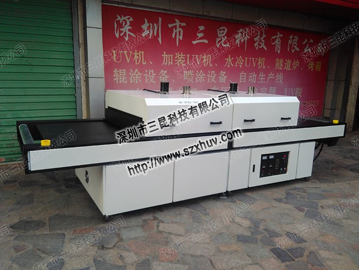 UV燈管是采用不銹鋼發熱管(單根功率1200W、220V),發熱管的安裝位置是裝在工件上方,采用無級調速,加熱功率:14kw,加熱溫度:室溫~120°C,溫區:2段,PID智能溫控,如果需要高溫隧道爐請聯系我們三昆科技的業務員,為你定制高溫隧道爐設計報價方案!